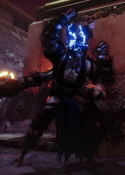 This image is a screenshot of a character or AI unit from the Destiny series of first-person shooter video games developed by Bungie Studios and published by Bungie or Activision. It falls under the screenshot category for a copyrighted computer game or video game, and the copyright for it is most likely held by the company that developed the game. It is believed that the use of a limited number of web-resolution screenshots: