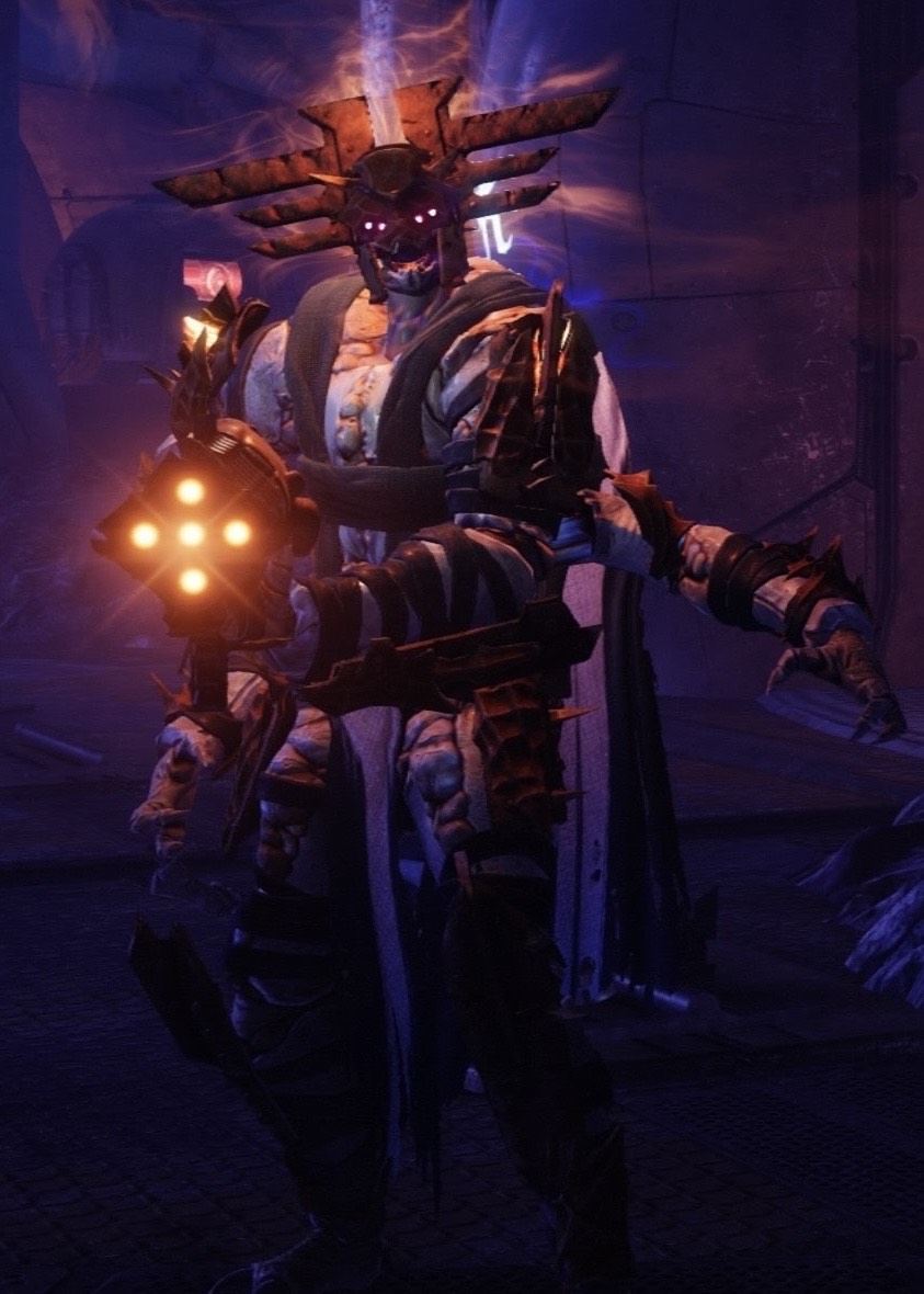 This image is a screenshot of a character or AI unit from the Destiny series of first-person shooter video games developed by Bungie Studios and published by Bungie or Activision. It falls under the screenshot category for a copyrighted computer game or video game, and the copyright for it is most likely held by the company that developed the game. It is believed that the use of a limited number of web-resolution screenshots:
