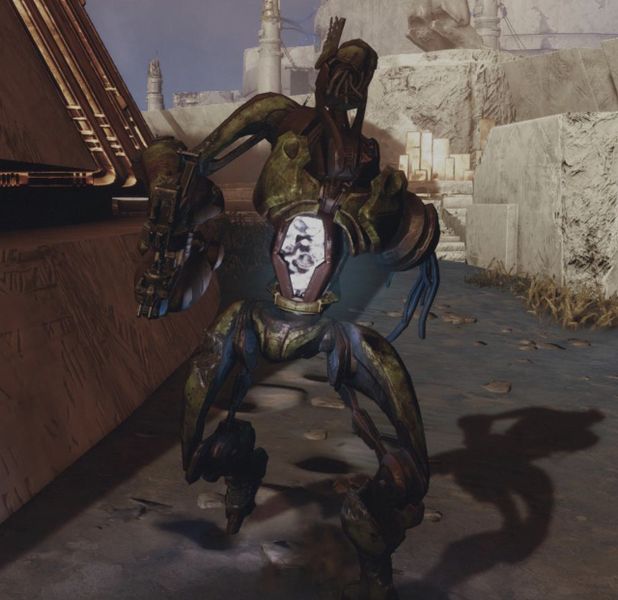 This image is a screenshot of a character or AI unit from the Destiny series of first-person shooter video games developed by Bungie Studios and published by Bungie or Activision. It falls under the screenshot category for a copyrighted computer game or video game, and the copyright for it is most likely held by the company that developed the game. It is believed that the use of a limited number of web-resolution screenshots: