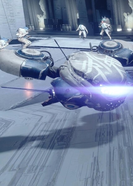 This image is a screenshot of a character or AI unit from the Destiny series of first-person shooter video games developed by Bungie Studios and published by Bungie or Activision. It falls under the screenshot category for a copyrighted computer game or video game, and the copyright for it is most likely held by the company that developed the game. It is believed that the use of a limited number of web-resolution screenshots: