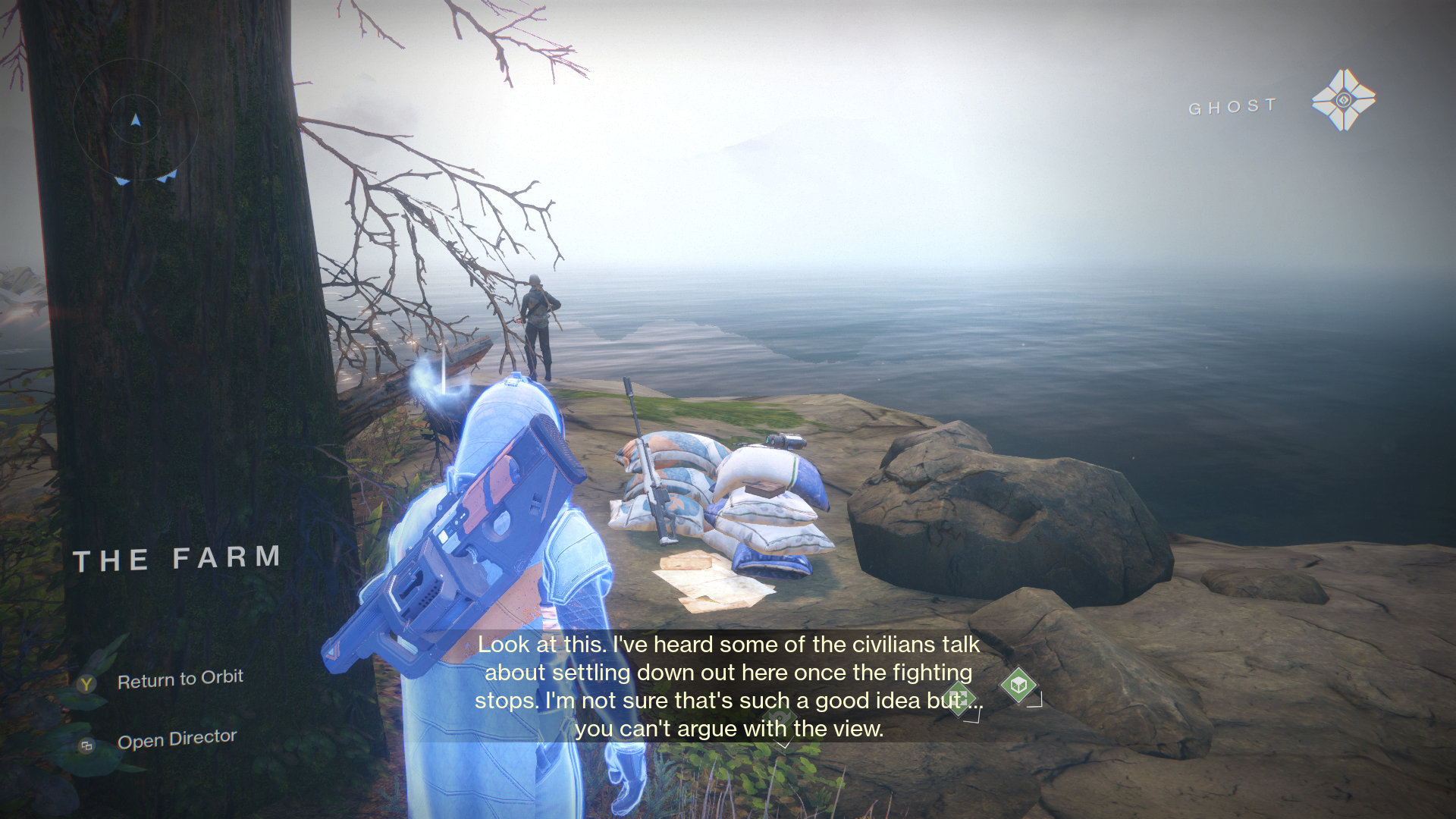 Ghost: "Look at this. I've heard some of the civilians talk about settling down out here once the fighting stops. I'm not sure that's such a good idea but... you can't argue with the view"