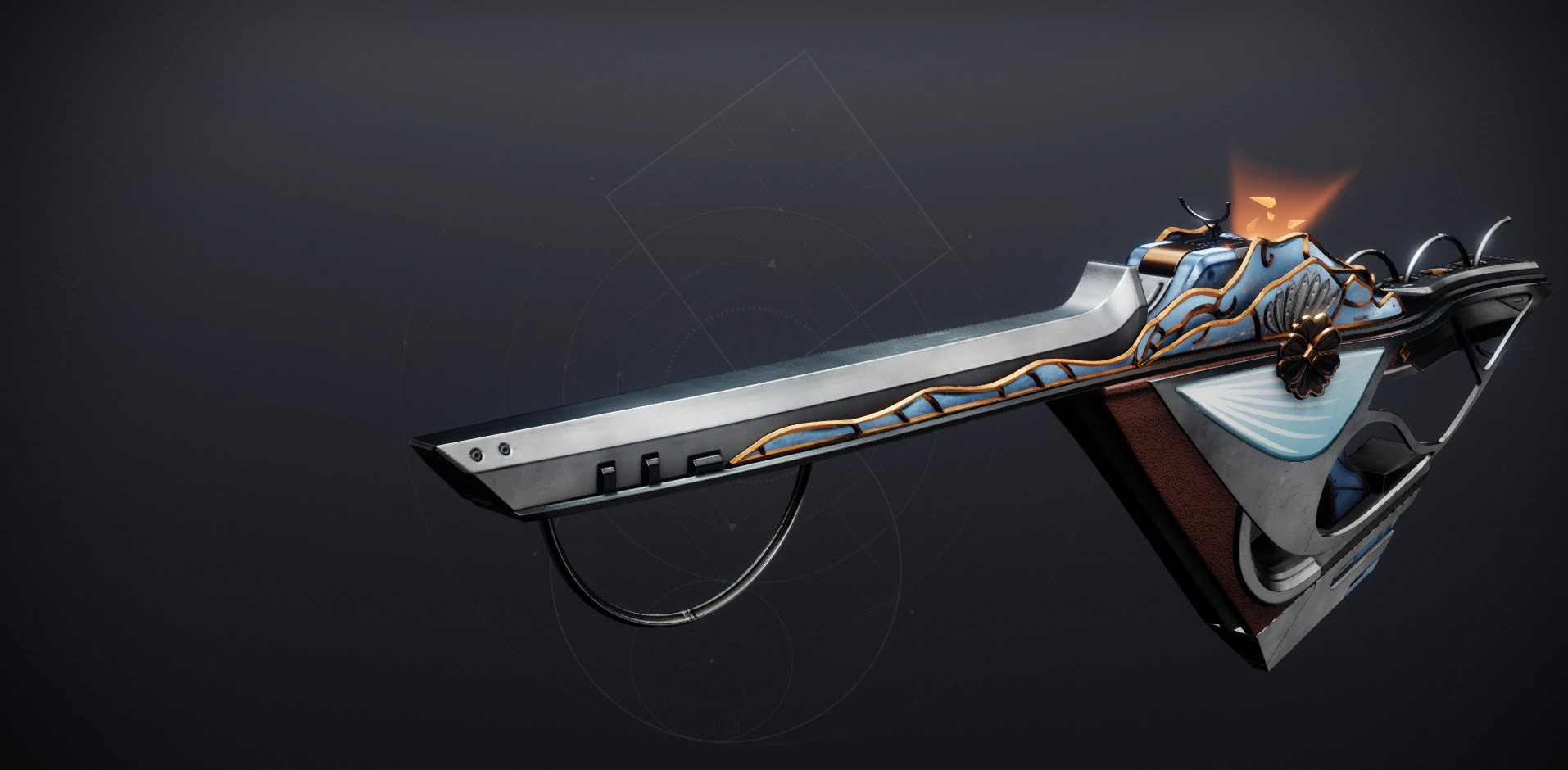 This image is a screenshot of a weapon from the Destiny series of first-person shooter video games developed by Bungie Studios and published by Bungie or Activision. It falls under the screenshot category for a copyrighted computer game or video game, and the copyright for it is most likely held by the company that developed the game. It is believed that the use of a limited number of web-resolution screenshots: