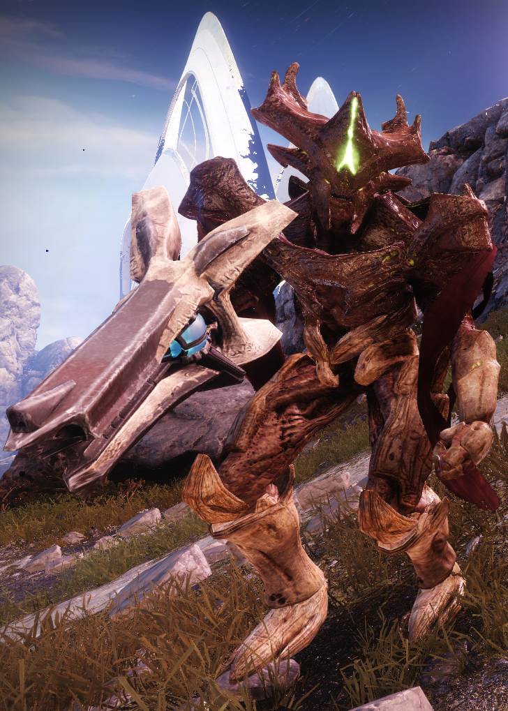 This image is a screenshot of a character or AI unit from the Destiny series of first-person shooter video games developed by Bungie Studios and published by Bungie or Activision. It falls under the screenshot category for a copyrighted computer game or video game, and the copyright for it is most likely held by the company that developed the game. It is believed that the use of a limited number of web-resolution screenshots: