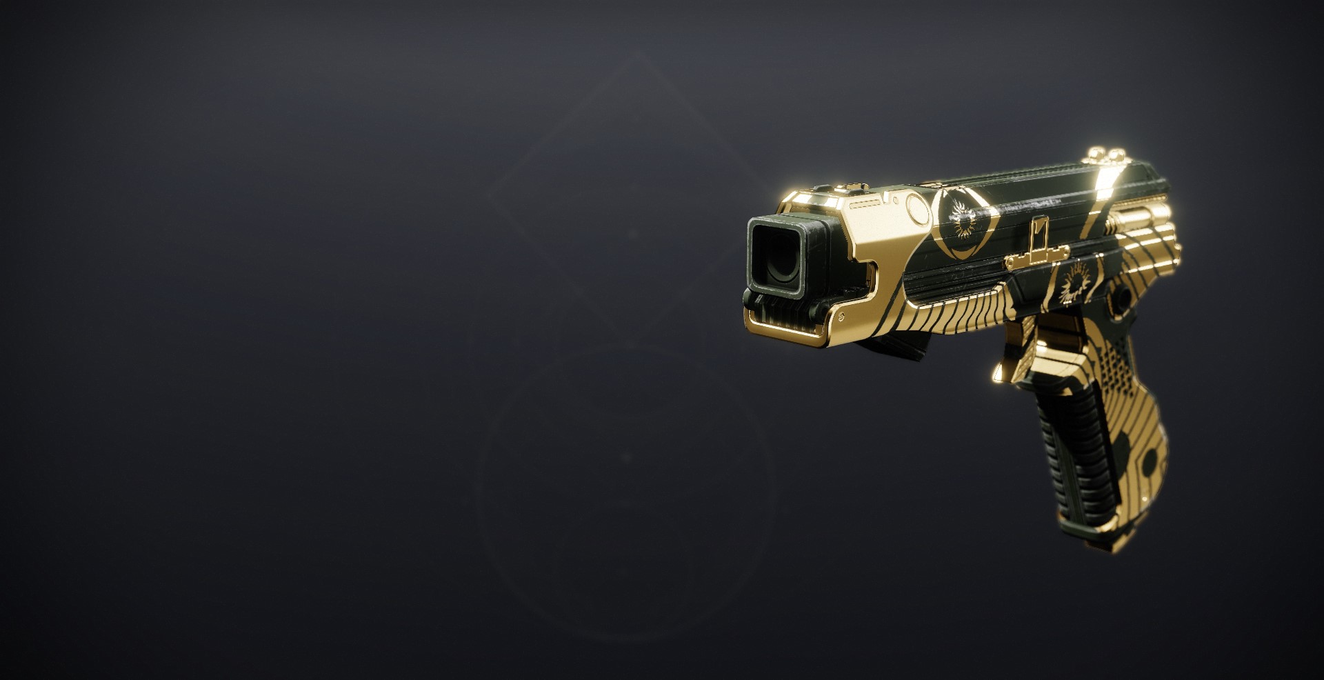 This image is a screenshot of a weapon from the Destiny series of first-person shooter video games developed by Bungie Studios and published by Bungie or Activision. It falls under the screenshot category for a copyrighted computer game or video game, and the copyright for it is most likely held by the company that developed the game. It is believed that the use of a limited number of web-resolution screenshots: