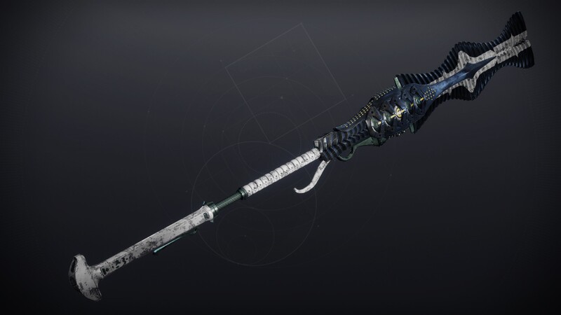 This image is a screenshot of a weapon from the Destiny series of first-person shooter video games developed by Bungie Studios and published by Bungie or Activision. It falls under the screenshot category for a copyrighted computer game or video game, and the copyright for it is most likely held by the company that developed the game. It is believed that the use of a limited number of web-resolution screenshots: