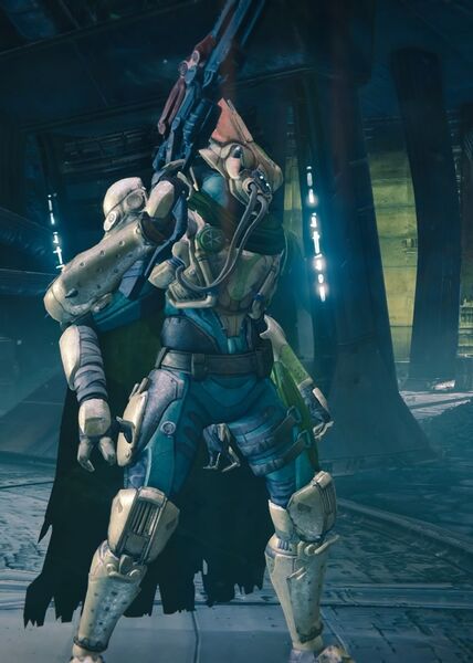 This image is a screenshot of a character or AI unit from the Destiny series of first-person shooter video games developed by Bungie Studios and published by Bungie or Activision. It falls under the screenshot category for a copyrighted computer game or video game, and the copyright for it is most likely held by the company that developed the game. It is believed that the use of a limited number of web-resolution screenshots: