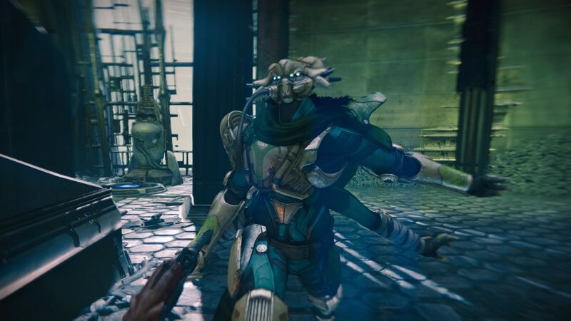 This image is a screenshot of a character or AI unit from the Destiny series of first-person shooter video games developed by Bungie Studios and published by Bungie or Activision. It falls under the screenshot category for a copyrighted computer game or video game, and the copyright for it is most likely held by the company that developed the game. It is believed that the use of a limited number of web-resolution screenshots: