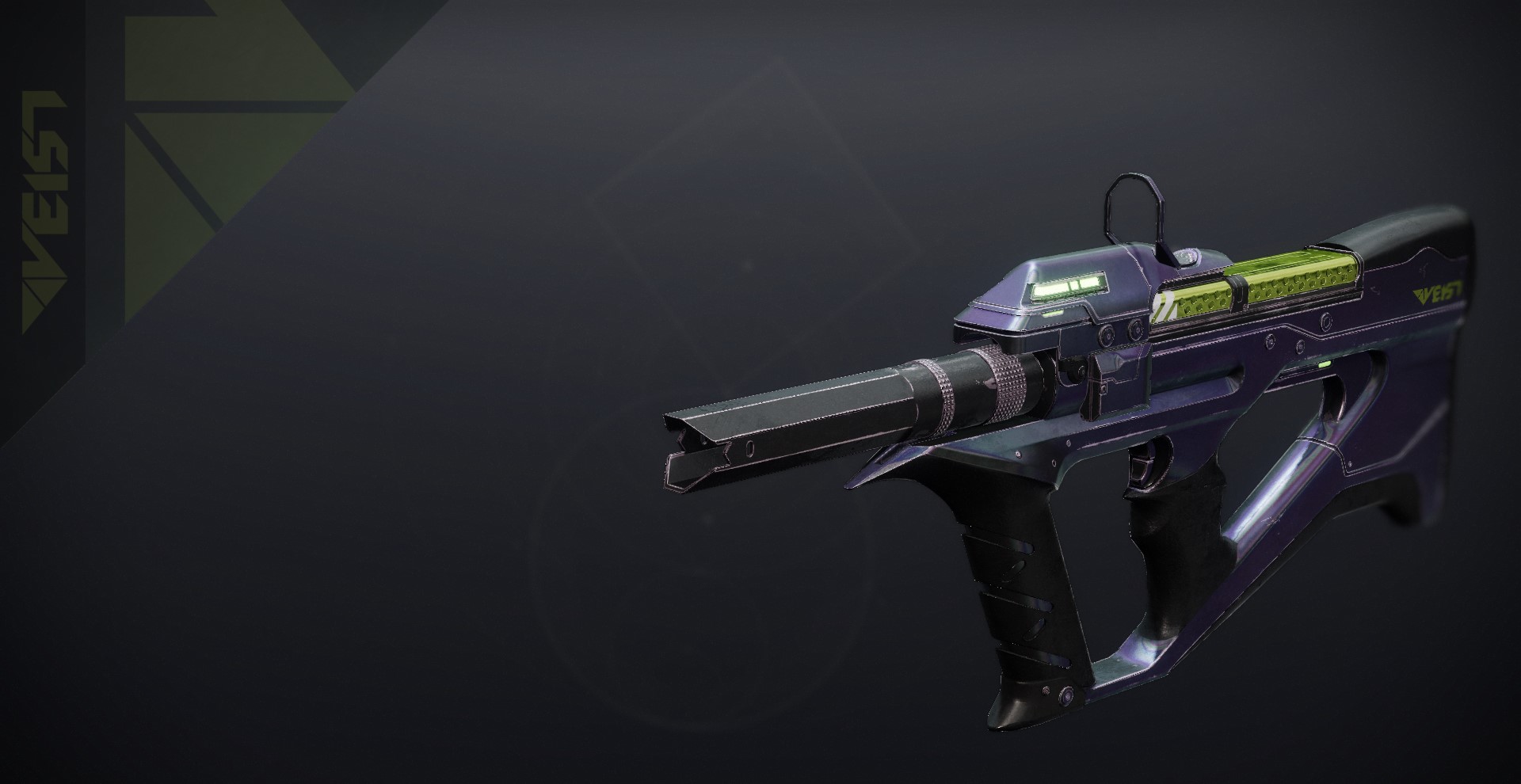 This image is a screenshot of a weapon from the Destiny series of first-person shooter video games developed by Bungie Studios and published by Bungie or Activision. It falls under the screenshot category for a copyrighted computer game or video game, and the copyright for it is most likely held by the company that developed the game. It is believed that the use of a limited number of web-resolution screenshots: