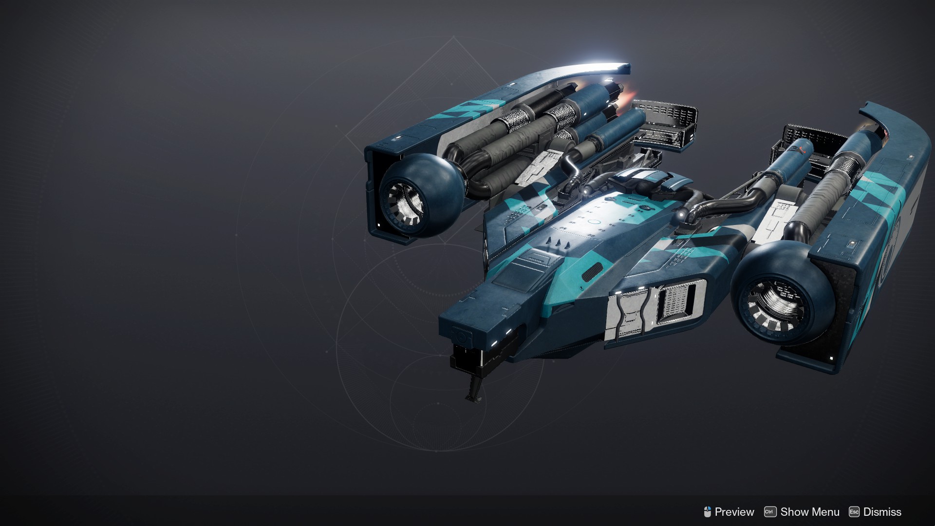 This image is a screenshot of a vehicle from the Destiny series of first-person shooter video games developed by Bungie Studios and published by Bungie or Activision. It falls under the screenshot category for a copyrighted computer game or video game, and the copyright for it is most likely held by the company that developed the game. It is believed that the use of a limited number of web-resolution screenshots: