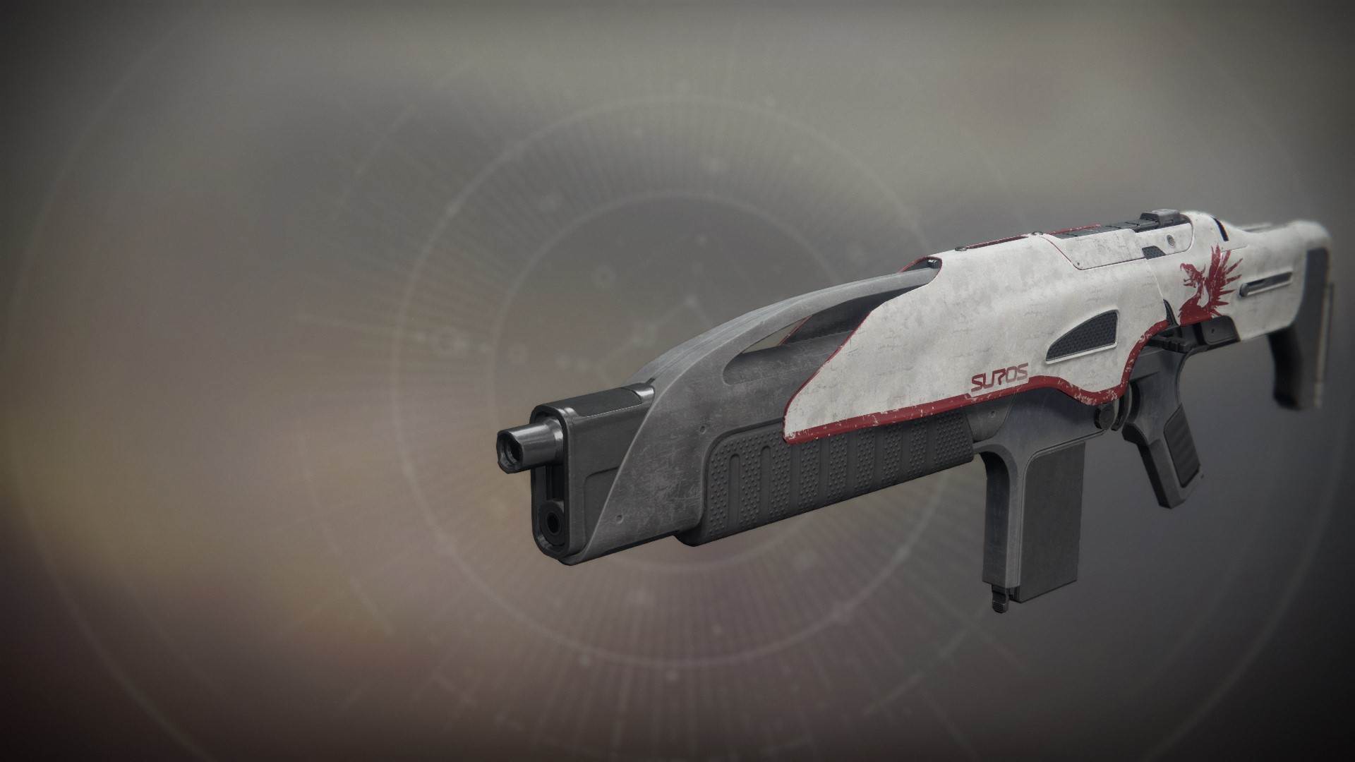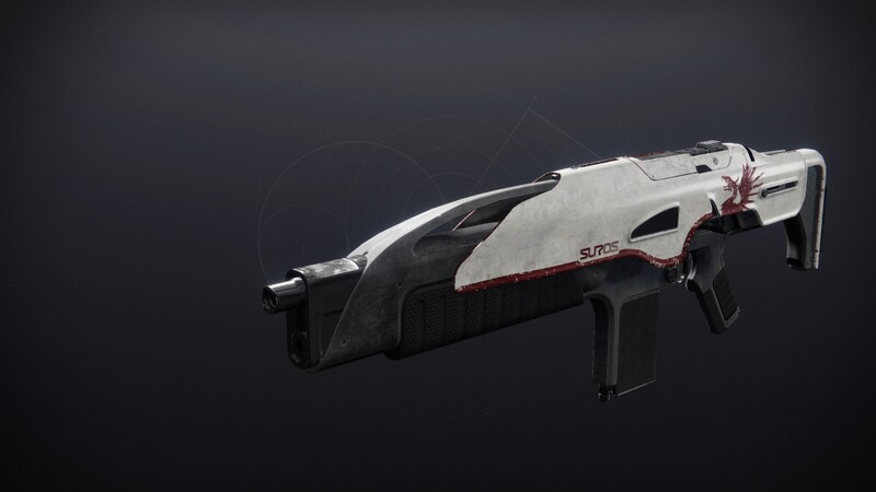 This image is a screenshot of a weapon from the Destiny series of first-person shooter video games developed by Bungie Studios and published by Bungie or Activision. It falls under the screenshot category for a copyrighted computer game or video game, and the copyright for it is most likely held by the company that developed the game. It is believed that the use of a limited number of web-resolution screenshots: