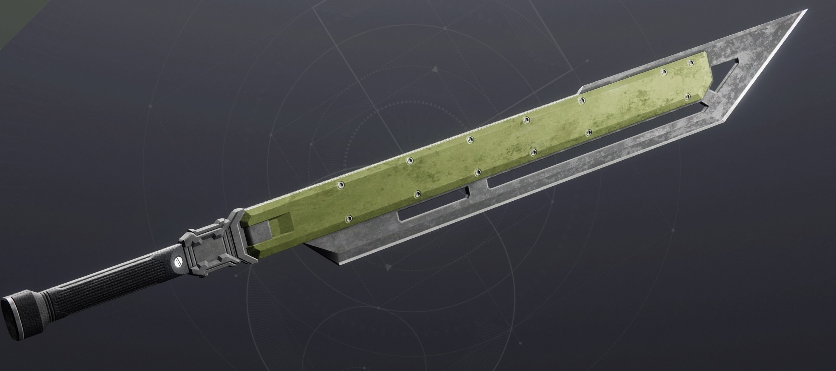 This image is a screenshot of a weapon from the Destiny series of first-person shooter video games developed by Bungie Studios and published by Bungie or Activision. It falls under the screenshot category for a copyrighted computer game or video game, and the copyright for it is most likely held by the company that developed the game. It is believed that the use of a limited number of web-resolution screenshots: