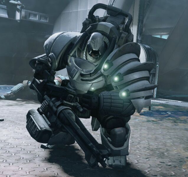 This image is a screenshot of a character or AI unit from the Destiny series of first-person shooter video games developed by Bungie Studios and published by Bungie or Activision. It falls under the screenshot category for a copyrighted computer game or video game, and the copyright for it is most likely held by the company that developed the game. It is believed that the use of a limited number of web-resolution screenshots: