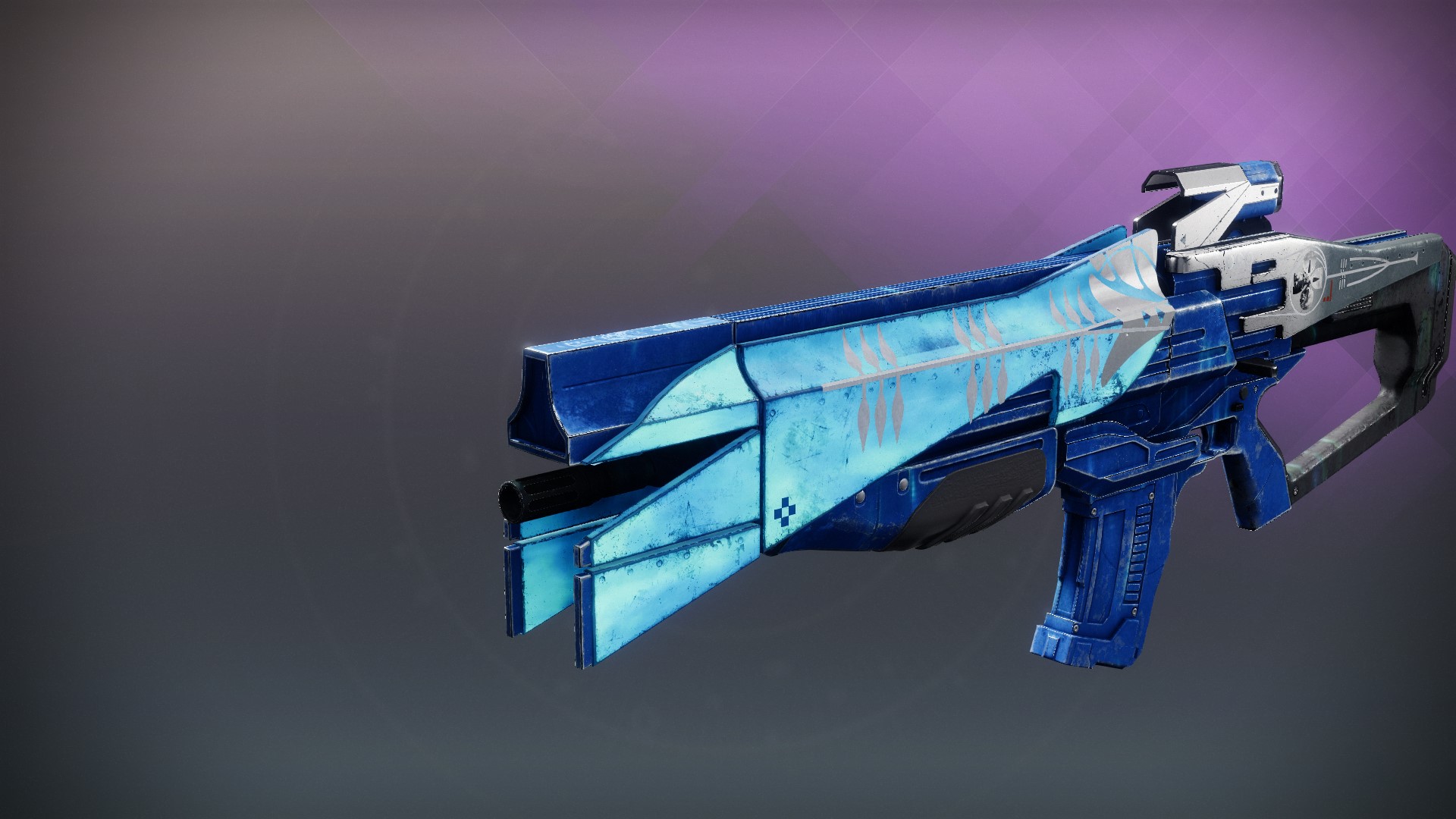 This image is a screenshot of a weapon from the Destiny series of first-person shooter video games developed by Bungie Studios and published by Bungie or Activision. It falls under the screenshot category for a copyrighted computer game or video game, and the copyright for it is most likely held by the company that developed the game. It is believed that the use of a limited number of web-resolution screenshots: