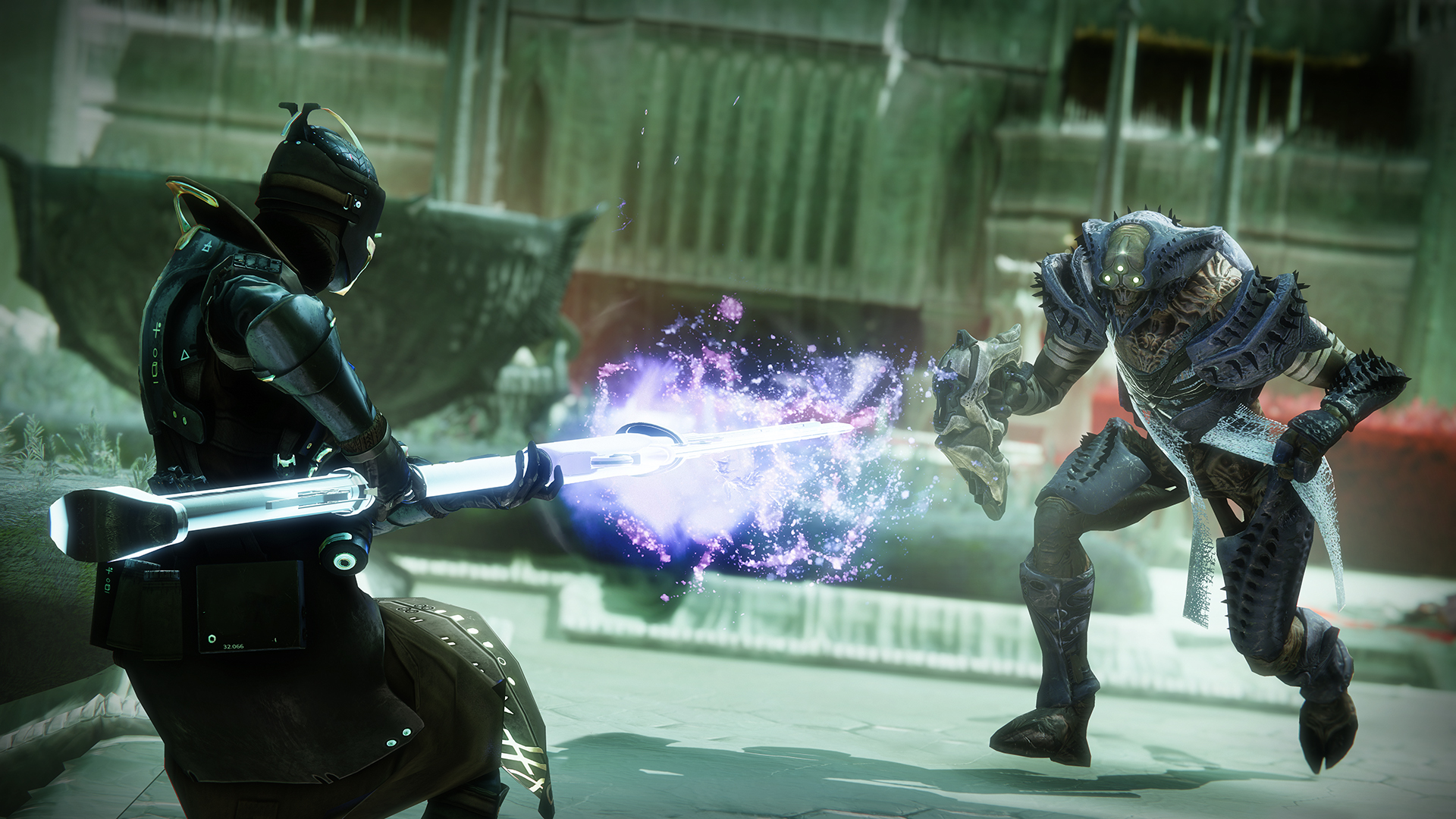 This image is a screenshot of a weapon from the Destiny series of first-person shooter video games developed by Bungie Studios and published by Bungie or Activision. It falls under the screenshot category for a copyrighted computer game or video game, and the copyright for it is most likely held by the company that developed the game. It is believed that the use of a limited number of web-resolution screenshots: