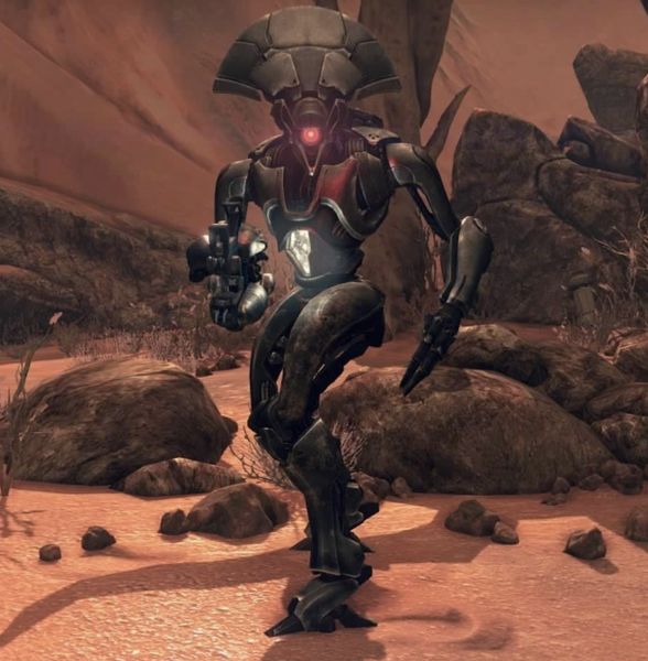 This image is a screenshot of a character or AI unit from the Destiny series of first-person shooter video games developed by Bungie Studios and published by Bungie or Activision. It falls under the screenshot category for a copyrighted computer game or video game, and the copyright for it is most likely held by the company that developed the game. It is believed that the use of a limited number of web-resolution screenshots: