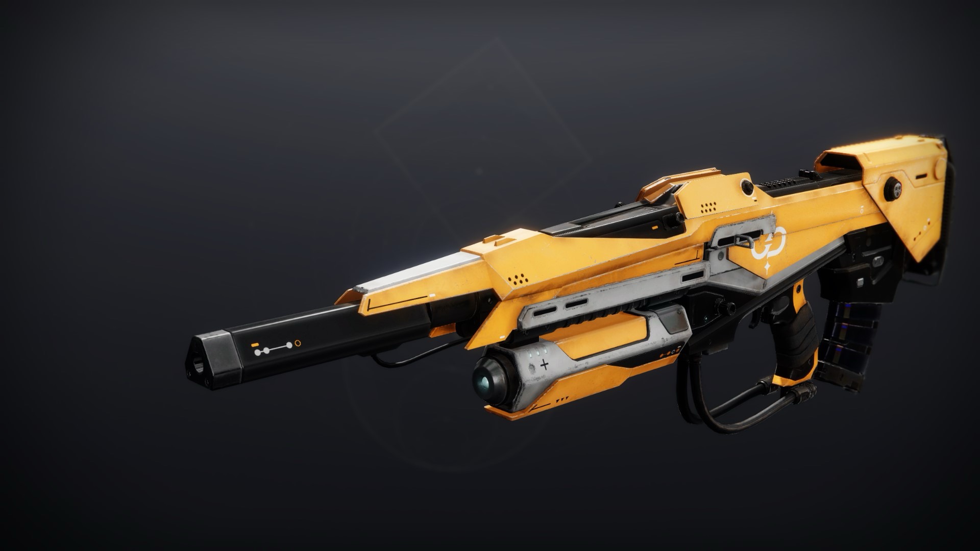 This image is a screenshot of a weapon from the Destiny series of first-person shooter video games developed by Bungie Studios and published by Bungie or Activision. It falls under the screenshot category for a copyrighted computer game or video game, and the copyright for it is most likely held by the company that developed the game. It is believed that the use of a limited number of web-resolution screenshots: