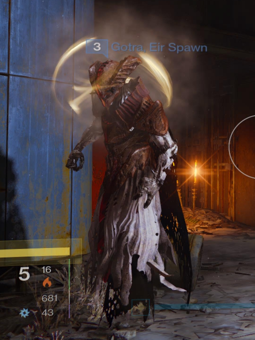 This image is a screenshot of a character or AI unit from the Destiny series of first-person shooter video games developed by Bungie Studios and published by Bungie or Activision. It falls under the screenshot category for a copyrighted computer game or video game, and the copyright for it is most likely held by the company that developed the game. It is believed that the use of a limited number of web-resolution screenshots: