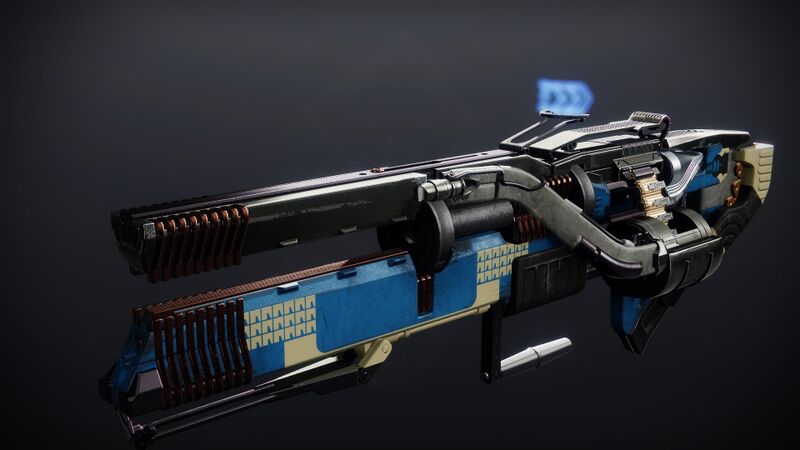 This image is a screenshot of a weapon from the Destiny series of first-person shooter video games developed by Bungie Studios and published by Bungie or Activision. It falls under the screenshot category for a copyrighted computer game or video game, and the copyright for it is most likely held by the company that developed the game. It is believed that the use of a limited number of web-resolution screenshots: