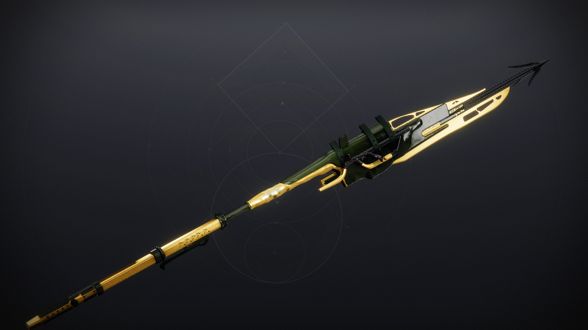 This image is a screenshot of a weapon from the Destiny series of first-person shooter video games developed by Bungie Studios and published by Bungie or Activision. It falls under the screenshot category for a copyrighted computer game or video game, and the copyright for it is most likely held by the company that developed the game. It is believed that the use of a limited number of web-resolution screenshots:
