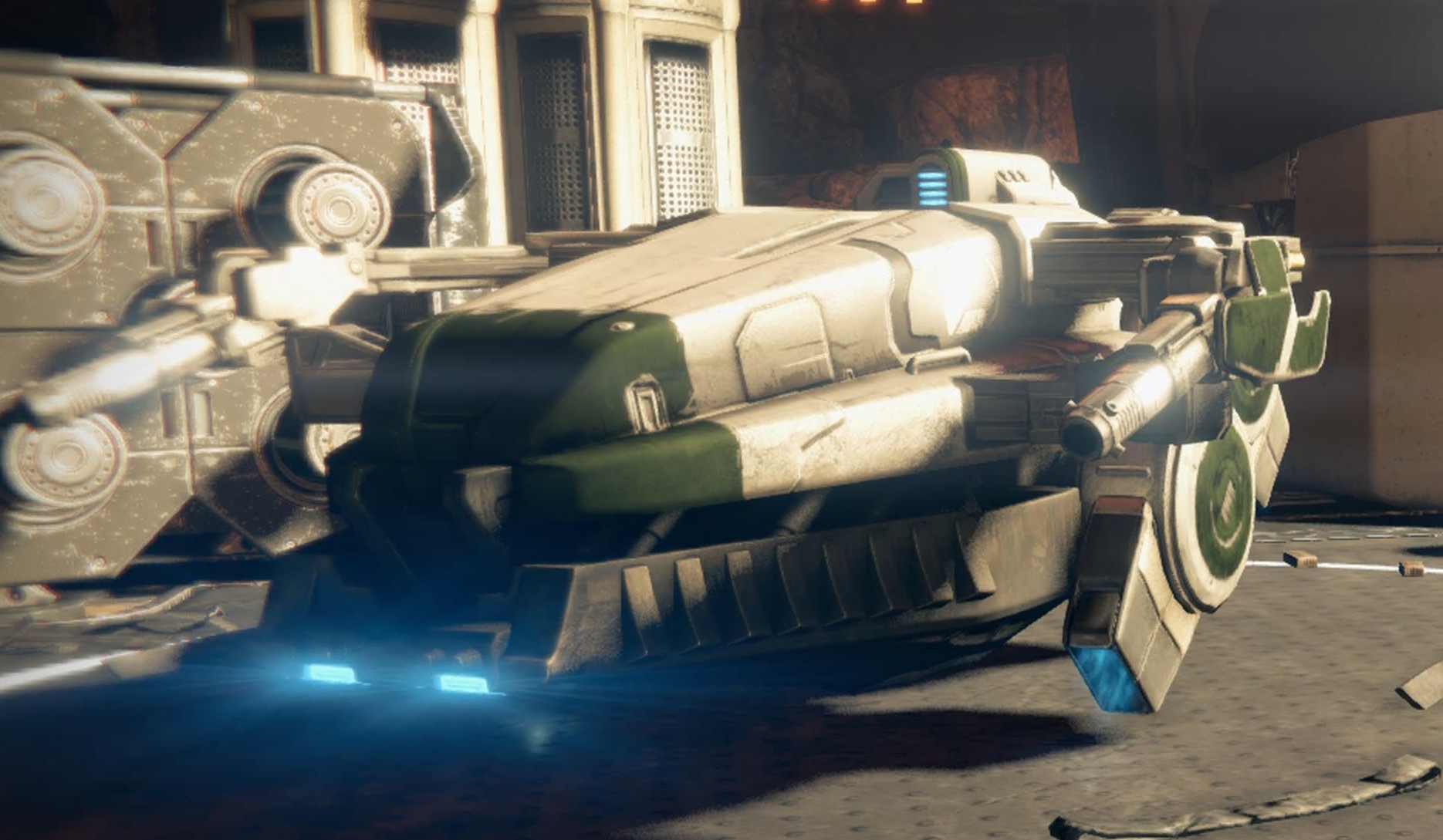 This image is a screenshot of a vehicle from the Destiny series of first-person shooter video games developed by Bungie Studios and published by Bungie or Activision. It falls under the screenshot category for a copyrighted computer game or video game, and the copyright for it is most likely held by the company that developed the game. It is believed that the use of a limited number of web-resolution screenshots: