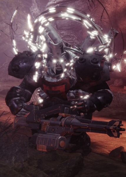 This image is a screenshot of a character or AI unit from the Destiny series of first-person shooter video games developed by Bungie Studios and published by Bungie or Activision. It falls under the screenshot category for a copyrighted computer game or video game, and the copyright for it is most likely held by the company that developed the game. It is believed that the use of a limited number of web-resolution screenshots: