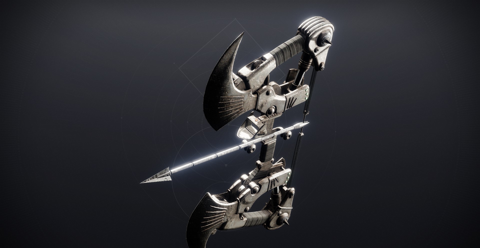 This image is a screenshot of a weapon from the Destiny series of first-person shooter video games developed by Bungie Studios and published by Bungie or Activision. It falls under the screenshot category for a copyrighted computer game or video game, and the copyright for it is most likely held by the company that developed the game. It is believed that the use of a limited number of web-resolution screenshots: