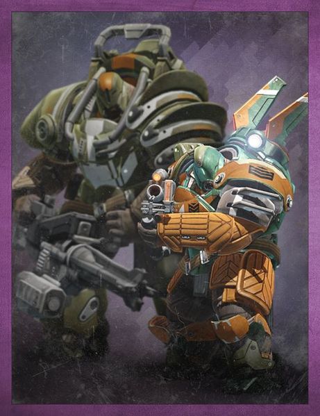 This image is a screenshot of a character or AI unit from the Destiny series of first-person shooter video games developed by Bungie Studios and published by Bungie or Activision. It falls under the screenshot category for a copyrighted computer game or video game, and the copyright for it is most likely held by the company that developed the game. It is believed that the use of a limited number of web-resolution screenshots: