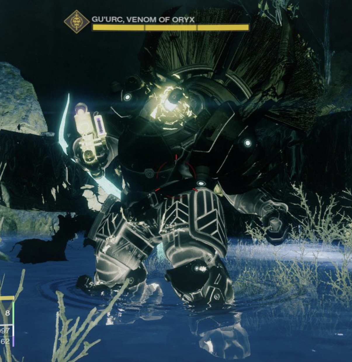 This image is a screenshot of a character or AI unit from the Destiny series of first-person shooter video games developed by Bungie Studios and published by Bungie or Activision. It falls under the screenshot category for a copyrighted computer game or video game, and the copyright for it is most likely held by the company that developed the game. It is believed that the use of a limited number of web-resolution screenshots: