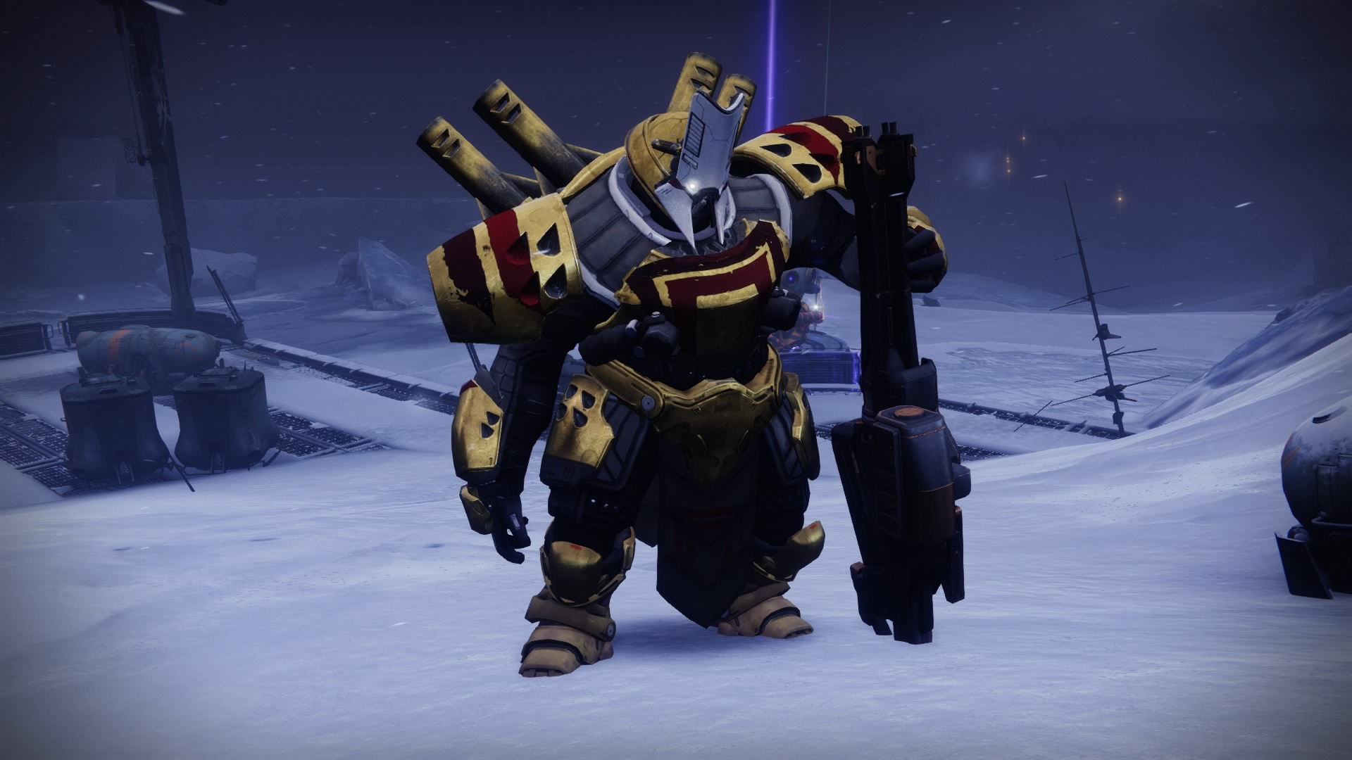 This image is a screenshot of a character or AI unit from the Destiny series of first-person shooter video games developed by Bungie Studios and published by Bungie or Activision. It falls under the screenshot category for a copyrighted computer game or video game, and the copyright for it is most likely held by the company that developed the game. It is believed that the use of a limited number of web-resolution screenshots: