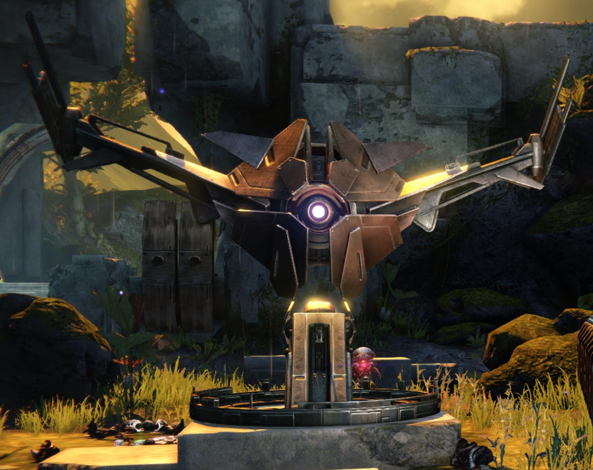 This image is a screenshot of a character or AI unit from the Destiny series of first-person shooter video games developed by Bungie Studios and published by Bungie or Activision. It falls under the screenshot category for a copyrighted computer game or video game, and the copyright for it is most likely held by the company that developed the game. It is believed that the use of a limited number of web-resolution screenshots: