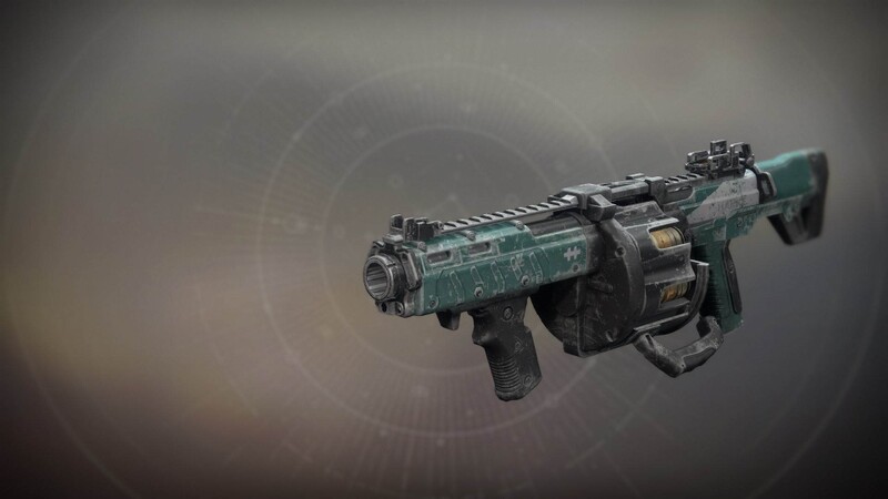 This image is a screenshot of a weapon from the Destiny series of first-person shooter video games developed by Bungie Studios and published by Bungie or Activision. It falls under the screenshot category for a copyrighted computer game or video game, and the copyright for it is most likely held by the company that developed the game. It is believed that the use of a limited number of web-resolution screenshots: