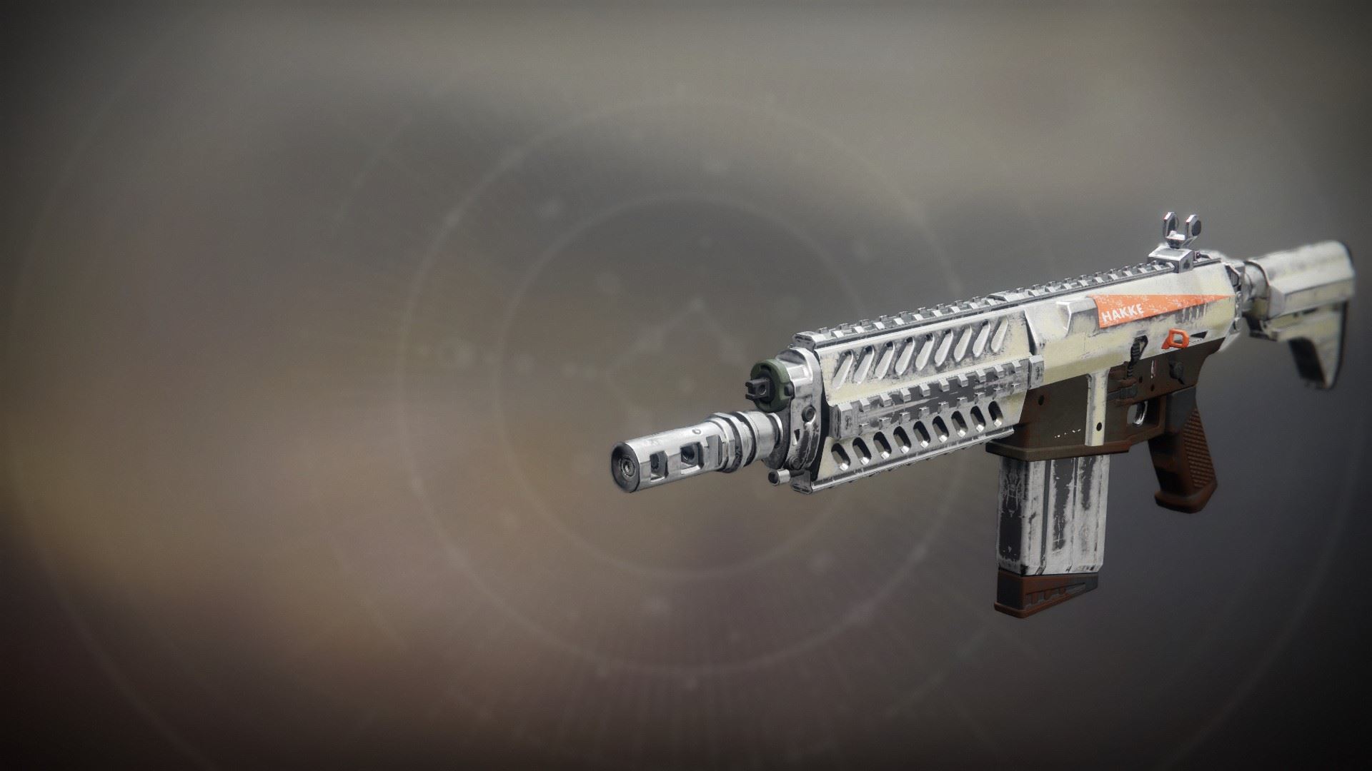 This image is a screenshot of a weapon from the Destiny series of first-person shooter video games developed by Bungie Studios and published by Bungie or Activision. It falls under the screenshot category for a copyrighted computer game or video game, and the copyright for it is most likely held by the company that developed the game. It is believed that the use of a limited number of web-resolution screenshots: