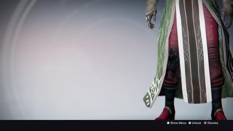 This image is a screenshot of armor from the Destiny series of first-person shooter video games developed by Bungie Studios and published by Bungie or Activision. It falls under the screenshot category for a copyrighted computer game or video game, and the copyright for it is most likely held by the company that developed the game. It is believed that the use of a limited number of web-resolution screenshots: