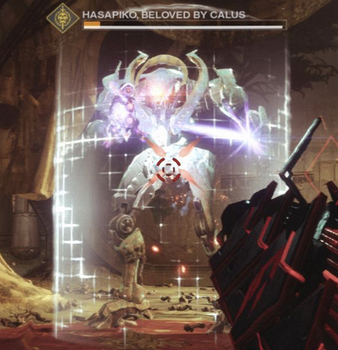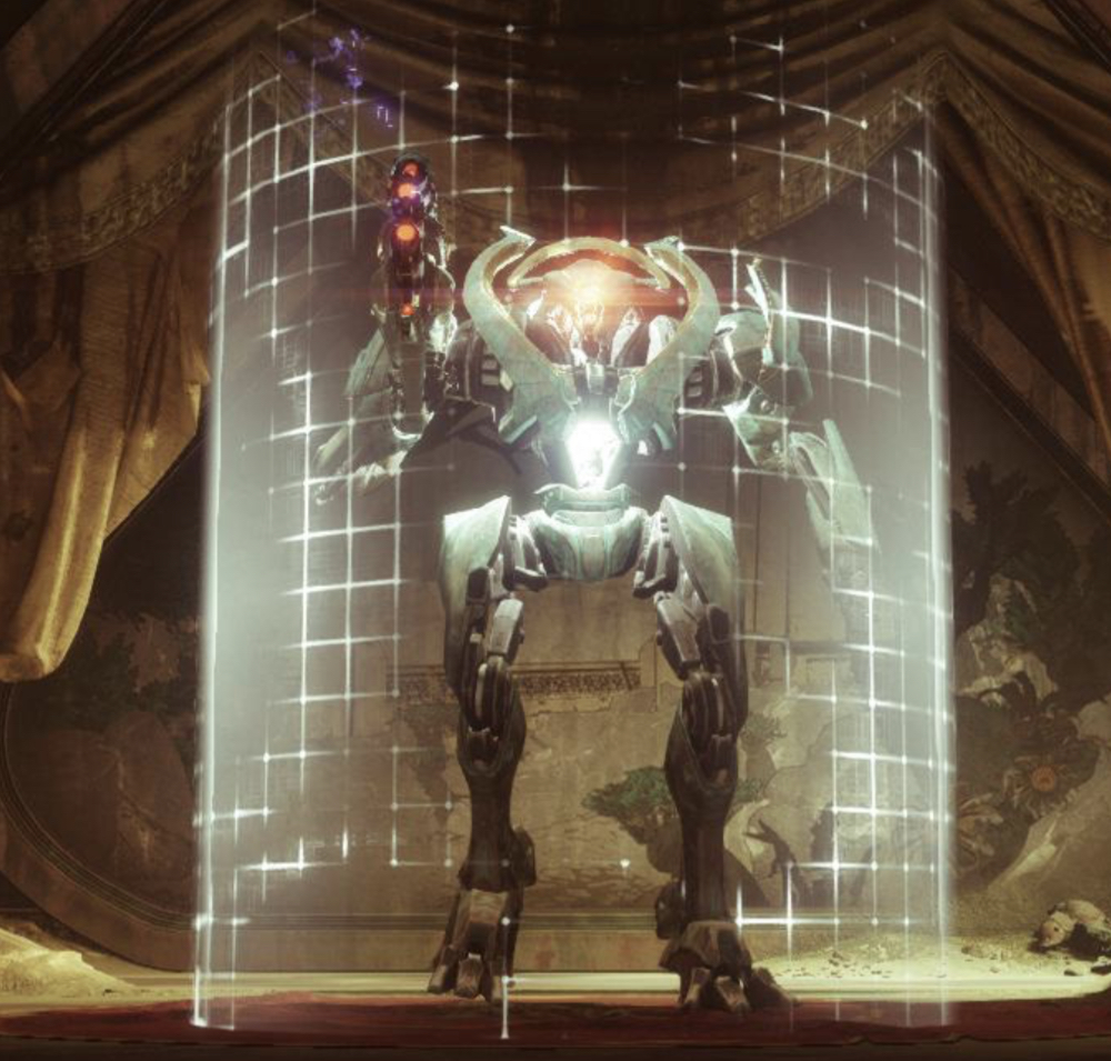 This image is a screenshot of a character or AI unit from the Destiny series of first-person shooter video games developed by Bungie Studios and published by Bungie or Activision. It falls under the screenshot category for a copyrighted computer game or video game, and the copyright for it is most likely held by the company that developed the game. It is believed that the use of a limited number of web-resolution screenshots:
