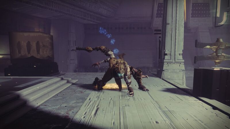This image is a screenshot of a character or AI unit from the Destiny series of first-person shooter video games developed by Bungie Studios and published by Bungie or Activision. It falls under the screenshot category for a copyrighted computer game or video game, and the copyright for it is most likely held by the company that developed the game. It is believed that the use of a limited number of web-resolution screenshots: