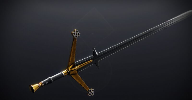 This image is a screenshot of a weapon from the Destiny series of first-person shooter video games developed by Bungie Studios and published by Bungie or Activision. It falls under the screenshot category for a copyrighted computer game or video game, and the copyright for it is most likely held by the company that developed the game. It is believed that the use of a limited number of web-resolution screenshots:
