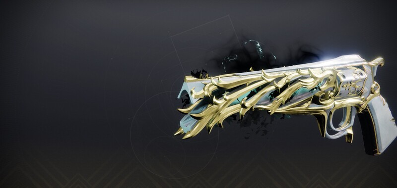 This image is a screenshot of a weapon from the Destiny series of first-person shooter video games developed by Bungie Studios and published by Bungie or Activision. It falls under the screenshot category for a copyrighted computer game or video game, and the copyright for it is most likely held by the company that developed the game. It is believed that the use of a limited number of web-resolution screenshots: