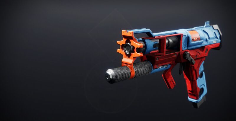This image is a screenshot of a weapon from the Destiny series of first-person shooter video games developed by Bungie Studios and published by Bungie or Activision. It falls under the screenshot category for a copyrighted computer game or video game, and the copyright for it is most likely held by the company that developed the game. It is believed that the use of a limited number of web-resolution screenshots: