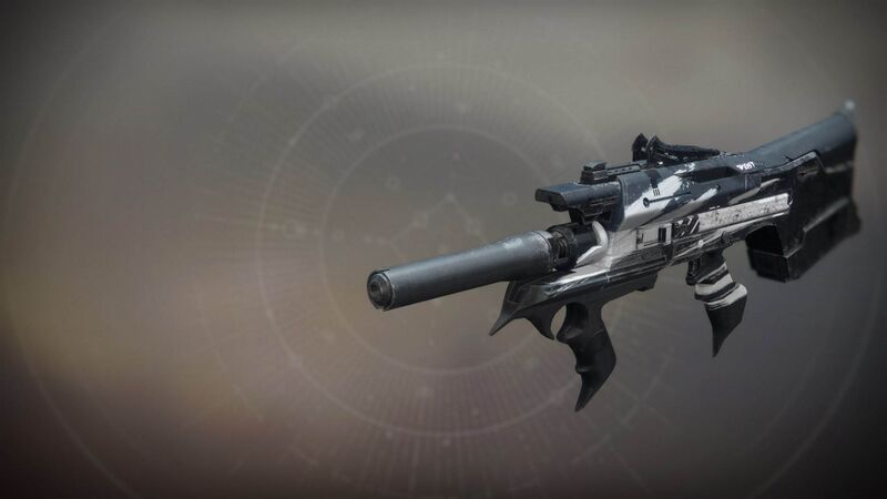 This image is a screenshot of a weapon from the Destiny series of first-person shooter video games developed by Bungie Studios and published by Bungie or Activision. It falls under the screenshot category for a copyrighted computer game or video game, and the copyright for it is most likely held by the company that developed the game. It is believed that the use of a limited number of web-resolution screenshots: