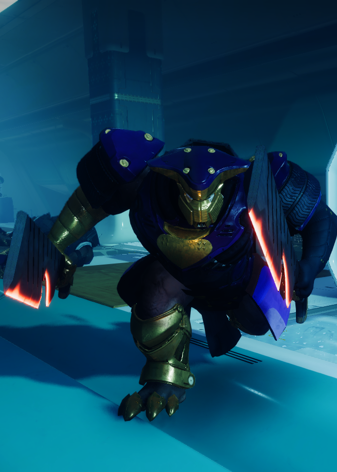 This image is a screenshot of a character or AI unit from the Destiny series of first-person shooter video games developed by Bungie Studios and published by Bungie or Activision. It falls under the screenshot category for a copyrighted computer game or video game, and the copyright for it is most likely held by the company that developed the game. It is believed that the use of a limited number of web-resolution screenshots: