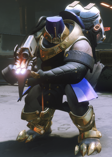 This image is a screenshot of a character or AI unit from the Destiny series of first-person shooter video games developed by Bungie Studios and published by Bungie or Activision. It falls under the screenshot category for a copyrighted computer game or video game, and the copyright for it is most likely held by the company that developed the game. It is believed that the use of a limited number of web-resolution screenshots:
