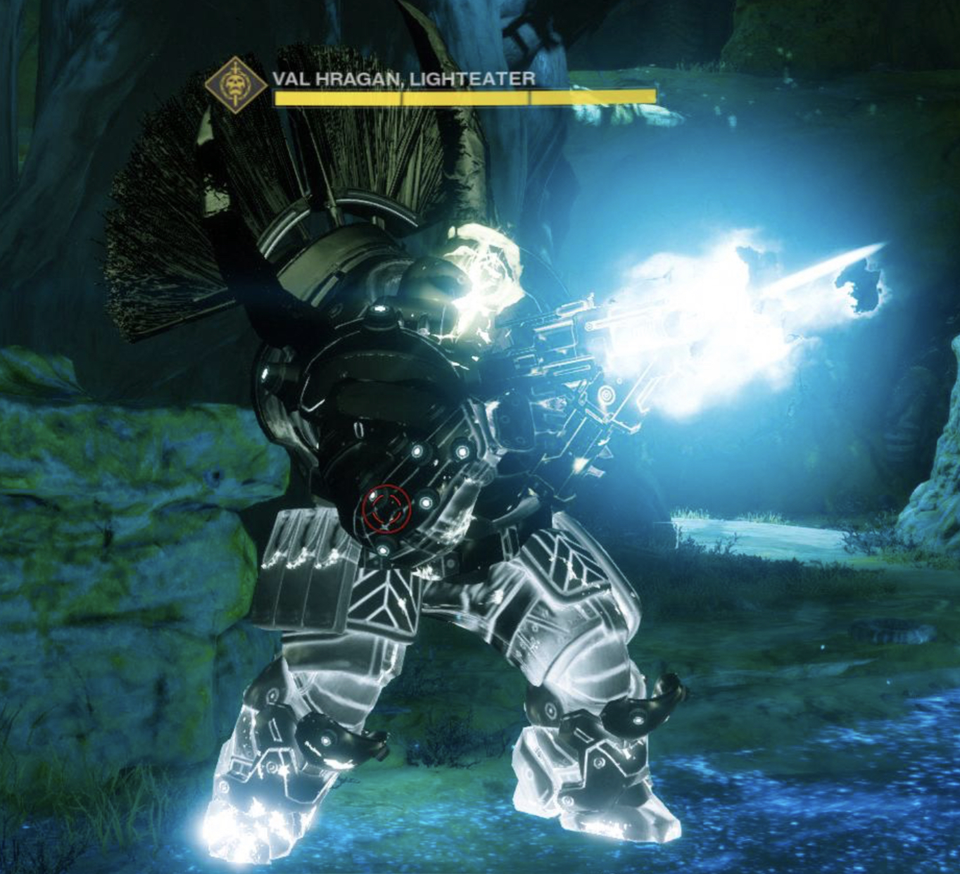 This image is a screenshot of a character or AI unit from the Destiny series of first-person shooter video games developed by Bungie Studios and published by Bungie or Activision. It falls under the screenshot category for a copyrighted computer game or video game, and the copyright for it is most likely held by the company that developed the game. It is believed that the use of a limited number of web-resolution screenshots: