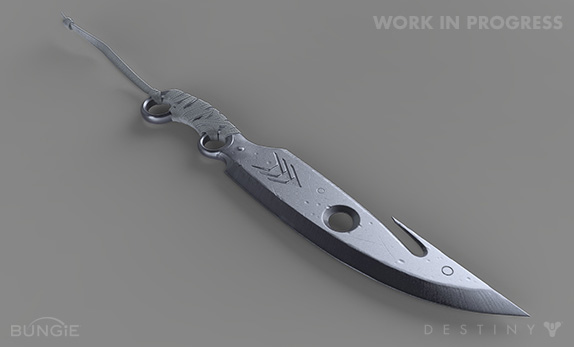This image is a screenshot of a weapon from the Destiny series of first-person shooter video games developed by Bungie Studios and published by Bungie or Activision. It falls under the screenshot category for a copyrighted computer game or video game, and the copyright for it is most likely held by the company that developed the game. It is believed that the use of a limited number of web-resolution screenshots: