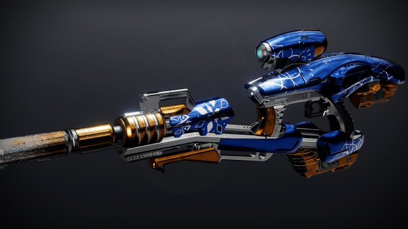 This image is a screenshot of a weapon from the Destiny series of first-person shooter video games developed by Bungie Studios and published by Bungie or Activision. It falls under the screenshot category for a copyrighted computer game or video game, and the copyright for it is most likely held by the company that developed the game. It is believed that the use of a limited number of web-resolution screenshots: