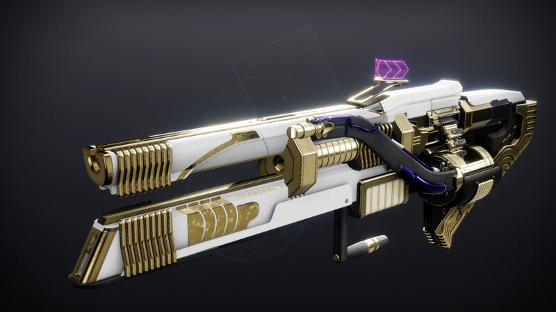 This image is a screenshot of a weapon from the Destiny series of first-person shooter video games developed by Bungie Studios and published by Bungie or Activision. It falls under the screenshot category for a copyrighted computer game or video game, and the copyright for it is most likely held by the company that developed the game. It is believed that the use of a limited number of web-resolution screenshots: