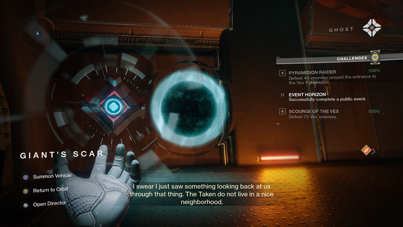 Ghost: "I swear I just saw something look back at us through that thing. The Taken do not live in a nice neighborhood."