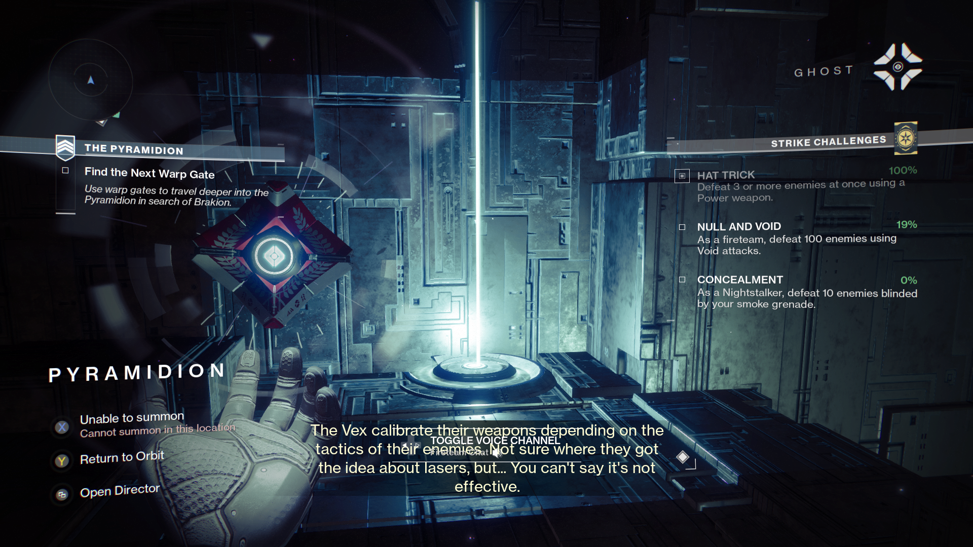 | current | 16:56, September 18, 2017 | 1,920 × 1,080 (2.88 MB) | KFC just (talk | contribs) | Ghost: "The Vex calibrate their weapons depending on the tactics of their enemies. Not sure where they got the idea about lasers, but... You can't say it's not effective." |