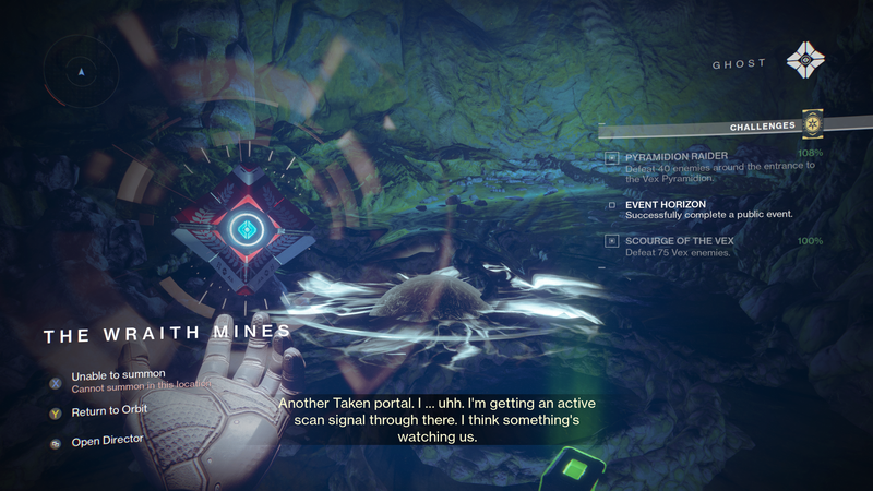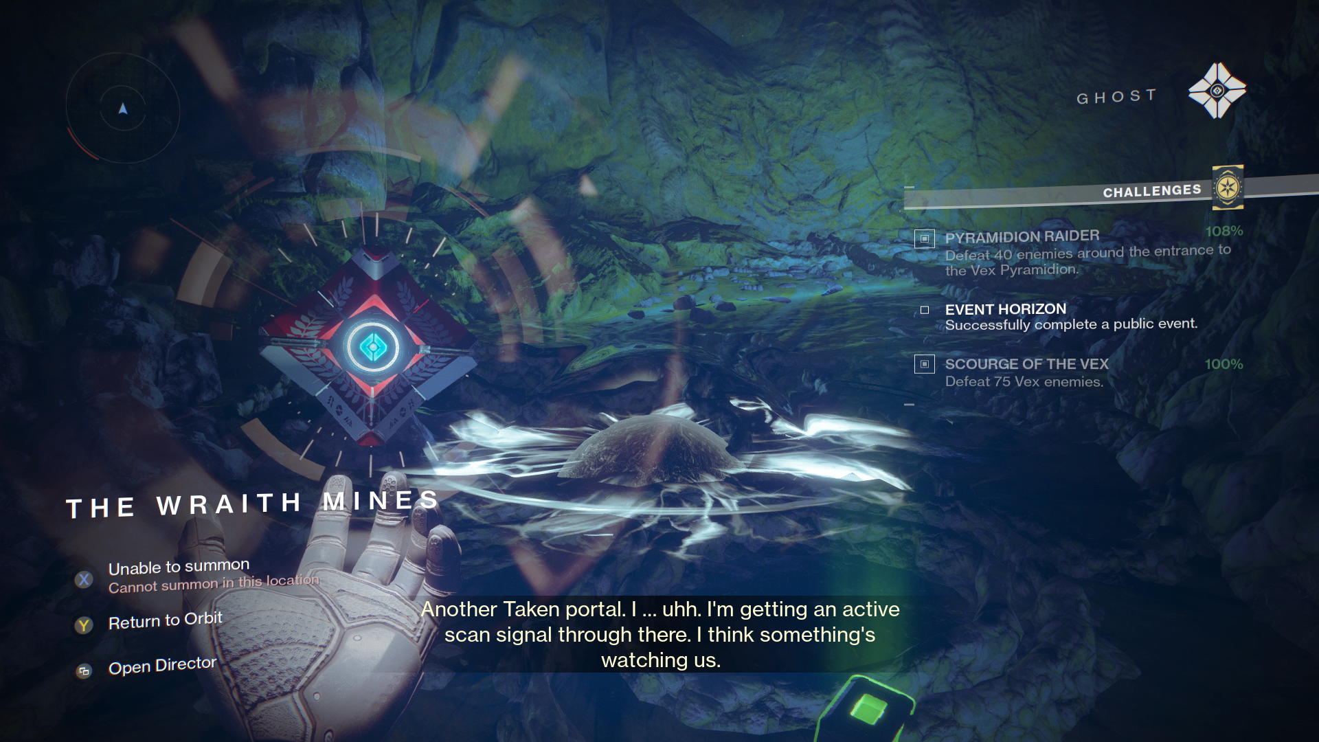 Ghost: "Another Taken portal. I...uhh. I'm getting an active scan signal through there. I think something's watching us.