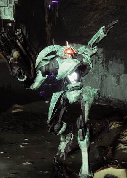 This image is a screenshot of a character or AI unit from the Destiny series of first-person shooter video games developed by Bungie Studios and published by Bungie or Activision. It falls under the screenshot category for a copyrighted computer game or video game, and the copyright for it is most likely held by the company that developed the game. It is believed that the use of a limited number of web-resolution screenshots: