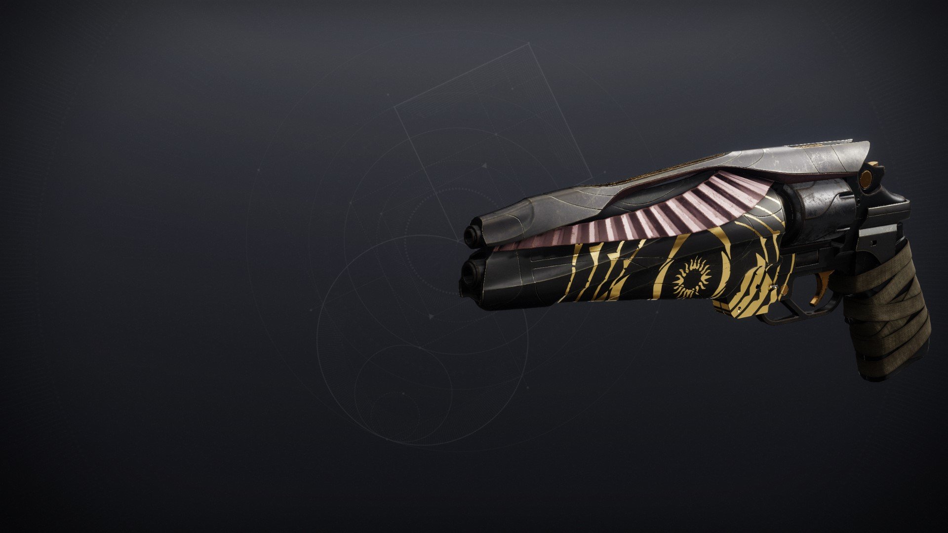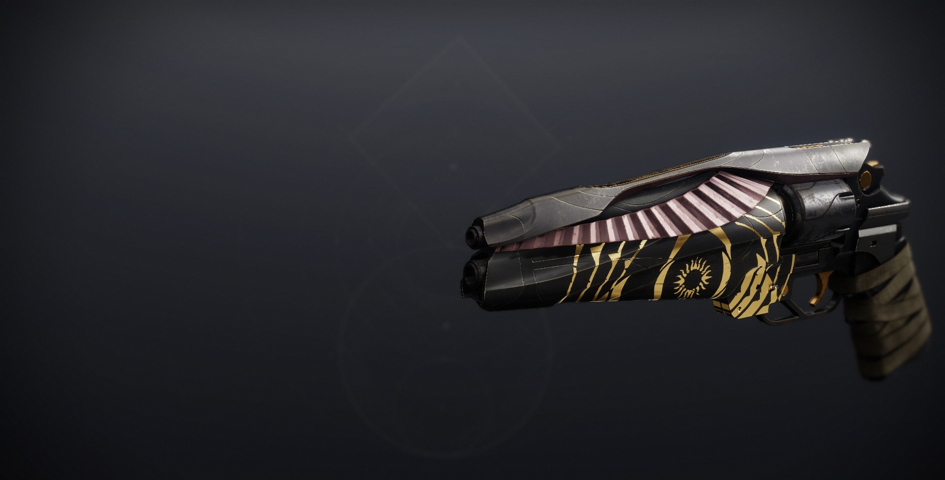 This image is a screenshot of a weapon from the Destiny series of first-person shooter video games developed by Bungie Studios and published by Bungie or Activision. It falls under the screenshot category for a copyrighted computer game or video game, and the copyright for it is most likely held by the company that developed the game. It is believed that the use of a limited number of web-resolution screenshots:
